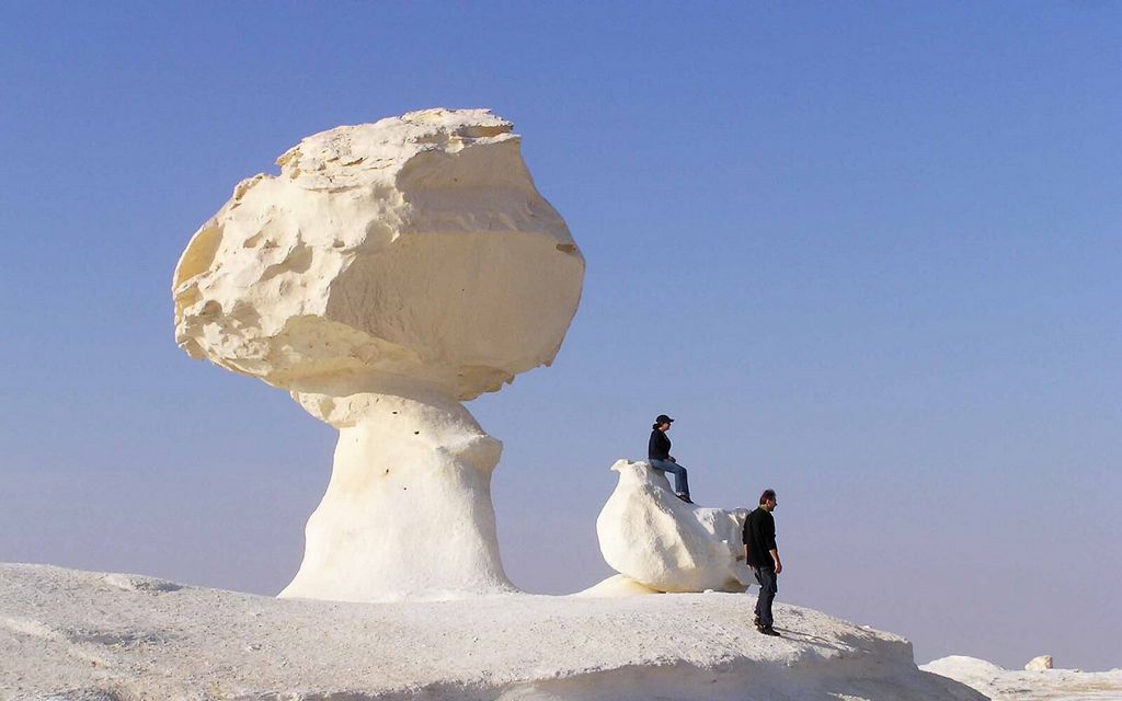 Visit famous mushroom shapes, Crystal Mountain, palm groves, Pyramid Mountain, camel farm, and English mountain