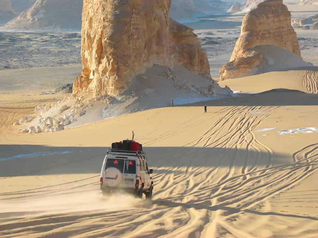 "Start your exciting adventure at 7:00 AM, where our driver will pick you up in a comfortable, air-conditioned vehicle for a scenic 4-hour drive (approximately 360 km) to Bahariya Oasis. Along the way, we'll make a brief stop at a rest house to refresh, grab a snack, or enjoy a drink before continuing on to our destination. We'll reach the oasis around 11:30 AM, where we'll switch to a 4أ—4 safari vehicle and meet our local Bedouin guide, who will lead us through the stunning desert landscape.